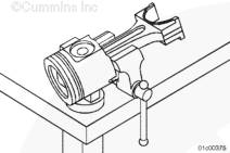 安裝康明斯ISX15 CM2250發(fā)動機活塞環(huán)時,使用臺鉗安裝連桿使總成保持在水平位置。