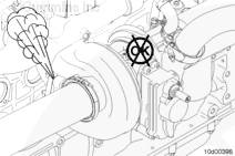 注: 在安裝新活塞環(huán)及舊缸套時,在開始工作的前幾個小時內(nèi)可能會經(jīng)歷竄氣量超過平均值的情況。在發(fā)動機工作幾個小時后,如果依然發(fā)現(xiàn)竄氣過量,請參考 TS 節(jié)內(nèi)的“曲軸箱氣體(竄氣)過量”故障診斷癥狀樹。
