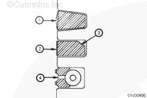 頂部活塞環(huán) (1) 為楔形環(huán),不能有扭曲或切槽。