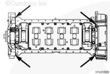 在康明斯ISX15 CM2250發(fā)動(dòng)機(jī)前齒輪室與飛輪殼體密封墊與油底殼密封墊相交處的四個(gè) T 形接頭上都涂上一道寬度為 1.97 mm [1/8 in] 的硅脂密封膠(零件號(hào) 3164067)。