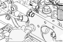 注: 安裝噴油器導線,使它們不與搖臂或發(fā)動機制動殼體產生干涉。如果搖臂能夠接觸到噴油器線束,會摩擦導線絕緣層,并導致噴油器電路故障代碼。