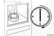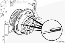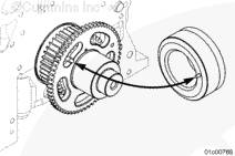 嘗試在相距約 90 度的 4 個位置上,在康明斯ISX15 CM2250發(fā)動機曲軸適配器和轉速信號輪之間插入 0.25 mm [0.010 in] 的塞尺來檢查安裝。如果能夠插入塞尺,必須拆下并更換曲軸適配器。