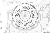 嘗試在四個位置(相距約 90 度),在曲軸齒輪和轉速信號輪之間插入 [0.25 mm] 0.010-英寸的塞尺來檢查安裝。