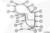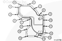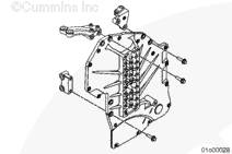 使用康明斯ISX15 CM2250發(fā)動(dòng)機(jī)提升設(shè)備將齒輪室蓋安裝到下部三個(gè)雙頭螺柱上。