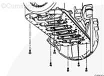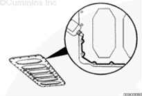 注: 安裝三個導(dǎo)向銷(零件號 3164977)以改進油底殼密封部件與缸體之間的對準情況。
