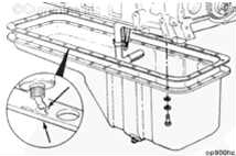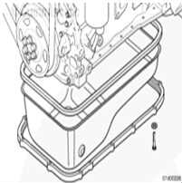 在新油底殼密封墊的兩側(cè)涂上一圈 2-mm [0.063-in] 的 RTV,零件號 3164067。