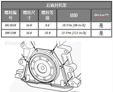 對(duì)于前齒輪系康明斯發(fā)動(dòng)機(jī),曲軸后油封托架安裝在缸體后部,以蓋住曲軸后油封。對(duì)于后齒輪系發(fā)動(dòng)機(jī),曲軸后油封安裝在飛輪殼中