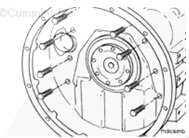 注: 安裝飛輪殼之前,應(yīng)確保所有定位銷位于拆卸飛輪殼時(shí)的相同位置。