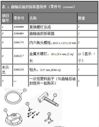 康明斯B3.9、B4.5、B4.5 RGT和B5.9發(fā)動機曲軸后油封安裝維修技術(shù)參數(shù)手冊