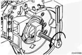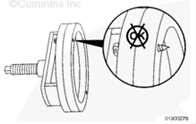固定康明斯B3.9、B4.5、B4.5 RGT 和 B5.9 發(fā)動機曲軸油封拆裝器的同時,逆時針旋轉(zhuǎn)拆裝器螺釘直到曲軸油封拆裝器附帶的一次性起子接觸飛輪殼。