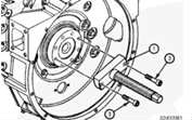 根據(jù)本步驟中前面的說明將曲軸后油封安裝在曲軸法蘭上以后,將拆裝器螺釘總成 (1) 安裝在曲軸后端。