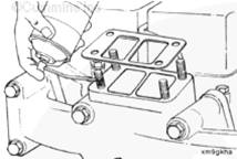 按照?qǐng)D示線路在進(jìn)氣歧管上涂抹 RTV 密封膠(零件號(hào) 3164070)。