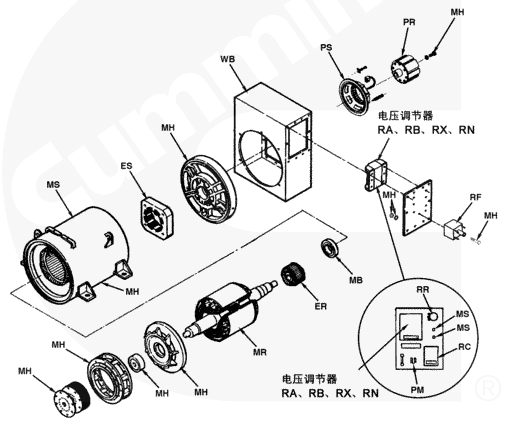 安裝緊固件、保險絲座、柔性連接盤、連接件、風扇、端支架、發(fā)電機殼體 |