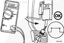 使萬用表的表筆與離合器踏板位置開關(guān)接頭的 2 個端子接觸。