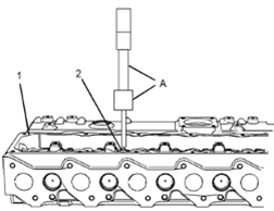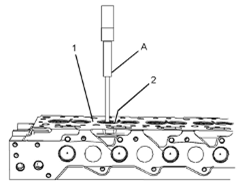 2用清潔的發(fā)動機機油潤滑新氣門導管(2)。將氣門導管(2)置于Perkins1106A/C發(fā)動機缸蓋(1)上的位置中。小心輕敲氣門導管以開始安裝。