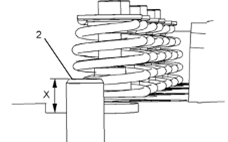 5檢查氣門導管(2)的凸出(X)。氣門導管應比Perkins1106A/C發(fā)動機氣門彈簧凹槽高出12.7mm(0.500in)。有關更多資料,請參閱《技術規(guī)格》,“Perkins1106A/C發(fā)動機缸蓋氣門”。