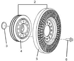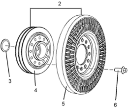 b.從Perkins1106A/C發(fā)動(dòng)機(jī)曲軸皮帶輪組件(2)上拆下螺栓(6)。