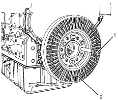 3將其余的Torx螺釘(1)從Perkins1106A/C發(fā)動(dòng)機(jī)曲軸皮帶輪組件(2)上拆下。