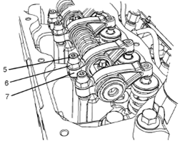 7松開所有搖臂(7)上的螺母(6)。擰松所有搖臂(7)上的調(diào)節(jié)器(5),直到所有氣門完全閉合。