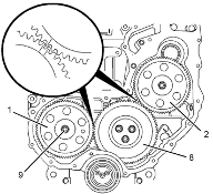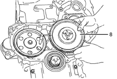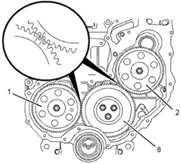 8標(biāo)記齒輪(1)、(2)和(8)以便顯示對準(zhǔn)位置。請參閱插圖123。