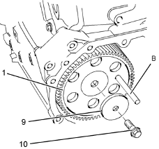 4安裝Perkins1106A/C發(fā)動機(jī)凸輪軸齒輪(1)。松散地安裝Perkins1106A/C發(fā)動機(jī)凸輪軸齒輪的螺栓(10)和墊圈(9)。請參閱《Perkins1106A/C發(fā)動機(jī)拆解和組裝》,“Perkins1106A/C發(fā)動機(jī)凸輪軸齒輪-拆卸和安裝”以了解正確程序。