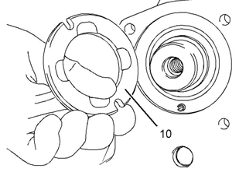 3如有必要,將止推墊圈(10)安裝到Perkins1106A/C發(fā)動(dòng)機(jī)缸體的凹槽中。更多信息請(qǐng)參閱《Perkins1106A/C發(fā)動(dòng)機(jī)拆解和組裝》,“Perkins1106A/C發(fā)動(dòng)機(jī)凸輪軸-安裝”。