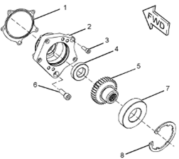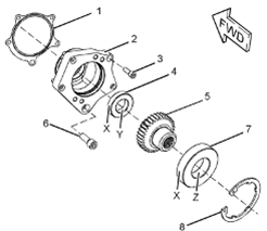 a.檢查齒輪(5)的輪齒和花鍵有無磨損或損壞。檢查軸承(7)、軸承(4)和卡環(huán)(8)。檢查前Perkins1106A/C發(fā)動機機殼體有無磨損或損壞。更換任何損壞或磨損的部件。