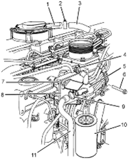 1拆下呼吸器的濾罐(10)。請參閱《Perkins1106A/C發(fā)動機操作和保養(yǎng)手冊》,“Perkins1106A/C發(fā)動機曲軸箱呼吸器(濾罐)-更換”。