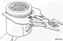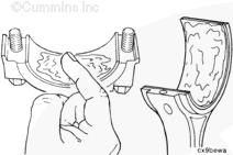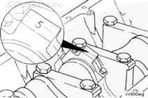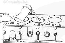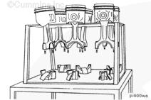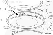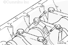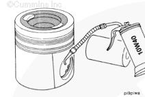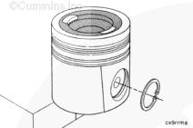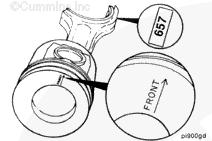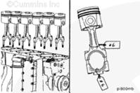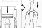 康明斯ISB5.9 G CM2180發(fā)動(dòng)機(jī)活塞和連桿總成 概述 TOC 與康明斯ISB5.9 G CM2180發(fā)動(dòng)機(jī)功率有關(guān)的問(wèn)題有很多,包括機(jī)油消耗過(guò)大、冒煙、竄氣和性能不良,它們可能由活塞環(huán)與缸壁之間的密封不良引起。A 竄氣測(cè)量值有助于發(fā)現(xiàn)問(wèn)題。參考第 14 節(jié)中的步驟 014-002。 連接康明斯ISB5.9 G CM2180發(fā)動(dòng)機(jī)活塞和連桿的活塞銷采用自由浮動(dòng)的中空活塞銷。已經(jīng)完成從活塞冷卻噴嘴通過(guò)滯留噴霧的方法潤(rùn)滑銷和軸頸。 康明斯ISB5.9 G CM2180發(fā)動(dòng)機(jī)連桿的活塞銷端帶有切削角度,以增加軸承受力面積。連桿端頭裝有青銅襯套。 準(zhǔn)備步驟 警告 為了減小人身傷害的可能性,應(yīng)避免皮膚直接接觸熱機(jī)油。 警告 冷卻液有毒。避免兒童與寵物接觸冷卻液。如果不再繼續(xù)使用,應(yīng)按照當(dāng)?shù)丨h(huán)保法規(guī)進(jìn)行處理。 排放機(jī)油。參考第 7 節(jié)中的步驟 007-025。 拆下油底殼和密封墊。參考第 7 節(jié)中的步驟 007-025。 排放冷卻液。參考第 8 節(jié)中的步驟 008-018。 拆下缸蓋。參考第 2 節(jié)中的步驟 002-004。 拆卸 TOC 根據(jù)康明斯ISB5.9 G CM2180發(fā)動(dòng)機(jī)氣缸位置標(biāo)記每個(gè)連桿蓋。 使用康明斯ISB5.9 G CM2180 發(fā)動(dòng)機(jī)盤(pán)車工具(零件號(hào) 3824591)旋轉(zhuǎn)曲軸,直到活塞位于積碳下方(可在活塞環(huán)行程區(qū)域的上方找到)。 注意 不要用砂布或砂紙去除缸孔上的積碳。來(lái)自這些材料的氧化鋁或硅微粒會(huì)嚴(yán)重?fù)p壞康明斯ISB5.9 G CM2180 發(fā)動(dòng)機(jī)。 用刮刀或鈍邊工具松動(dòng)積碳。不要讓刮刀損壞缸套。 注: 在清潔缸孔時(shí),執(zhí)行圓柱運(yùn)動(dòng),不是垂直運(yùn)動(dòng),確保不造成泄漏通道。 用 Scotch-Brite 清潔墊或等同物清除剩余的積碳。 拆下康明斯ISB5.9 G CM2180發(fā)動(dòng)機(jī)螺釘、連桿蓋和連桿軸承。參考第 1 節(jié)中的步驟 001-005。 將康明斯ISB5.9 G CM2180發(fā)動(dòng)機(jī)連桿和活塞總成推出缸孔。注意不得損壞連桿或軸承。 用雙手取出活塞和連桿總成。 注: 活塞和連桿總成必須安裝在與拆卸時(shí)相同的氣缸上。如果要繼續(xù)使用這些零件,這樣會(huì)使磨損的配合面正確配合。 使用標(biāo)簽標(biāo)記拆下的活塞和連桿總成所屬的缸號(hào)。 將康明斯ISB5.9 G CM2180發(fā)動(dòng)機(jī)連桿和活塞總成放入容器中以免損壞。 解體 TOC 使用康明斯ISB5.9 G CM2180發(fā)動(dòng)機(jī)活塞環(huán)擴(kuò)張器(零件號(hào) 3823137)拆卸活塞環(huán)。參考第 1 節(jié)中的步驟 001-047。 拆卸康明斯ISB5.9 G CM2180發(fā)動(dòng)機(jī)卡環(huán)。 拆下康明斯ISB5.9 G CM2180發(fā)動(dòng)機(jī)活塞銷。 注: 不需要加熱活塞。 組裝 TOC 確?;钊系那皹?biāo)志以及連桿和連桿蓋上的數(shù)字的方向如圖所示。 將康明斯ISB5.9 G CM2180發(fā)動(dòng)機(jī)卡環(huán)安裝到活塞前側(cè)的活塞銷槽中。 用清潔的燃?xì)饪得魉笽SB5.9 G CM2180 發(fā)動(dòng)機(jī)機(jī)油潤(rùn)滑活塞銷及銷孔。 安裝康明斯ISB5.9 G CM2180發(fā)動(dòng)機(jī)銷。 注: 安裝活塞銷時(shí)無(wú)需加熱活塞,但活塞必須在室溫或室溫以上。 安裝康明斯ISB5.9 G CM2180發(fā)動(dòng)機(jī)第二個(gè)活塞銷卡環(huán)。 安裝 TOC 將康明斯ISB5.9 G CM2180發(fā)動(dòng)機(jī)軸瓦裝入連桿和連桿蓋中。確保軸瓦上的定位舌位于連桿蓋和連桿的槽中。 用一薄層清潔的康明斯ISB5.9 G CM2180 發(fā)動(dòng)機(jī)機(jī)油潤(rùn)滑連桿軸承。 安裝康明斯ISB5.9 G CM2180發(fā)動(dòng)機(jī)活塞環(huán)。參考第 1 節(jié)中的步驟 001-047。 使用清潔的燃?xì)饪得魉笽SB5.9 G CM2180 發(fā)動(dòng)機(jī)機(jī)油潤(rùn)滑活塞環(huán)和活塞裙。 放置各個(gè)康明斯ISB5.9 G CM2180發(fā)動(dòng)機(jī)活塞環(huán),使每個(gè)活塞環(huán)開(kāi)口相互成 120 度。 注意 如果使用帶式活塞環(huán)壓縮器,確保帶的內(nèi)側(cè)沒(méi)有掛在活塞環(huán)的缺口并折斷活塞環(huán)。 將康明斯ISB5.9 G CM2180發(fā)動(dòng)機(jī)活塞環(huán)壓縮器(零件號(hào) 3823290)安裝到活塞上。 康明斯ISB5.9 G CM2180發(fā)動(dòng)機(jī)壓縮活塞環(huán)。 使用清潔的燃?xì)饪得魉笽SB5.9 G CM2180 發(fā)動(dòng)機(jī)機(jī)油潤(rùn)滑缸孔。 使用康明斯ISB5.9 G CM2180 發(fā)動(dòng)機(jī)盤(pán)車工具(零件號(hào) 3824591),將要安裝的活塞連桿軸頸置于下止點(diǎn)。 注意在插入連桿時(shí)不要損壞缸壁。 將康明斯ISB5.9 G CM2180發(fā)動(dòng)機(jī)活塞和連桿總成裝入缸孔,活塞上的前標(biāo)記朝向缸體前部。 小心地將活塞推入缸孔,同時(shí)將連桿引導(dǎo)至曲軸軸頸處。 用清潔的康明斯ISB5.9 G CM2180 發(fā)動(dòng)機(jī)機(jī)油潤(rùn)滑螺紋和連桿螺釘頭的下部。 注: 印在連桿和連桿蓋間分型線上的編號(hào)必須匹配,并安裝在康明斯ISB5.9 G CM2180 發(fā)動(dòng)機(jī)機(jī)油冷卻器側(cè)。 將康明斯ISB5.9 G CM2180發(fā)動(dòng)機(jī)連桿蓋和螺釘安裝到連桿上。 交替擰緊 2 顆螺釘。 Torque Value: 30 n.m [22 ft-lb] 60 n.m [44 ft-lb] 順時(shí)針轉(zhuǎn)動(dòng) 60 度。 注: 不要測(cè)量連桿蓋與曲軸間的間隙。 用塞尺測(cè)量康明斯ISB5.9 G CM2180發(fā)動(dòng)機(jī)連桿與曲
