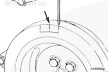 制作一個導(dǎo)線指示箭頭并安裝在康明斯ISB5.9 G CM2180 發(fā)動機(jī)前部。用一段導(dǎo)線放在齒輪室蓋其中的一個螺釘下面并擰緊就可以作到這一點。導(dǎo)線必須從齒輪室蓋延伸到曲軸減振器上某個容易被看到的地方。