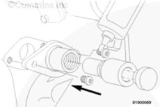 將康明斯ISB5.9 G CM2180 發(fā)動機(jī)位置傳感器定位工具固定在凸輪軸齒輪孔中,以便對準(zhǔn)殼體。