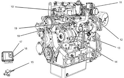 本部分中的插圖顯示工業(yè)用發(fā)動(dòng)機(jī)上傳感器和其他電氣部件的典型位置。具體發(fā)動(dòng)機(jī)可能因應(yīng)用而略有不同。操作部分超速(OVERSPEED