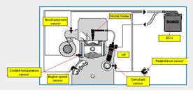 廣泛的跛行回家功能在系統(tǒng)中是一體化的。如果一些次要的傳感器失效,ECU將用其他傳感器的信號來替代或用一個固定的數值來控制。